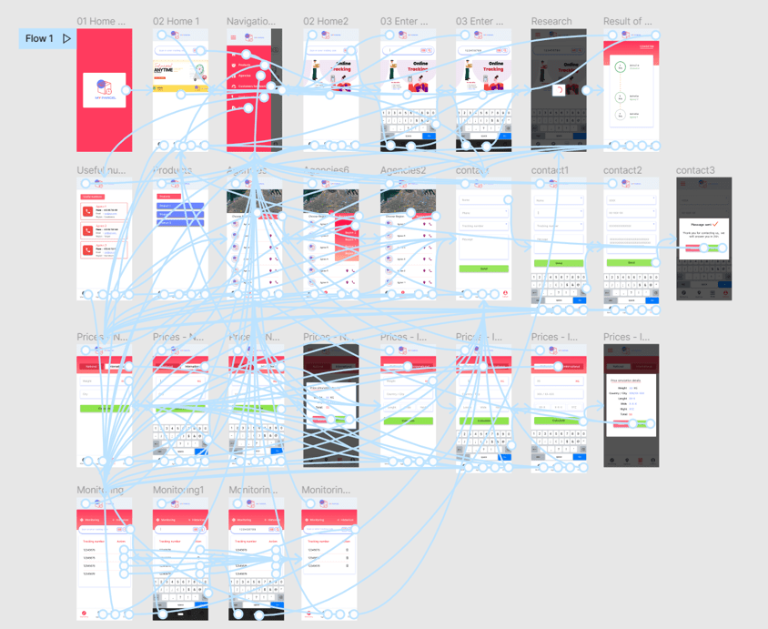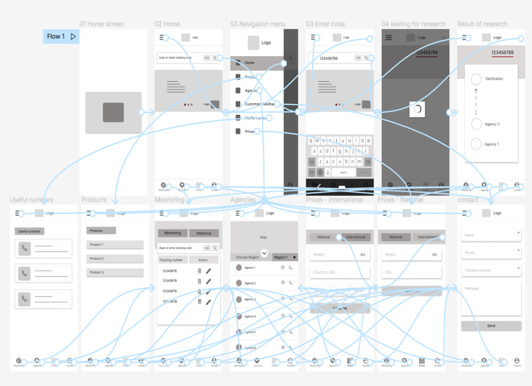 The low-fidelity prototype connected the primary user flow of parcel tracking, so the prototype could be used in the usability study with users.