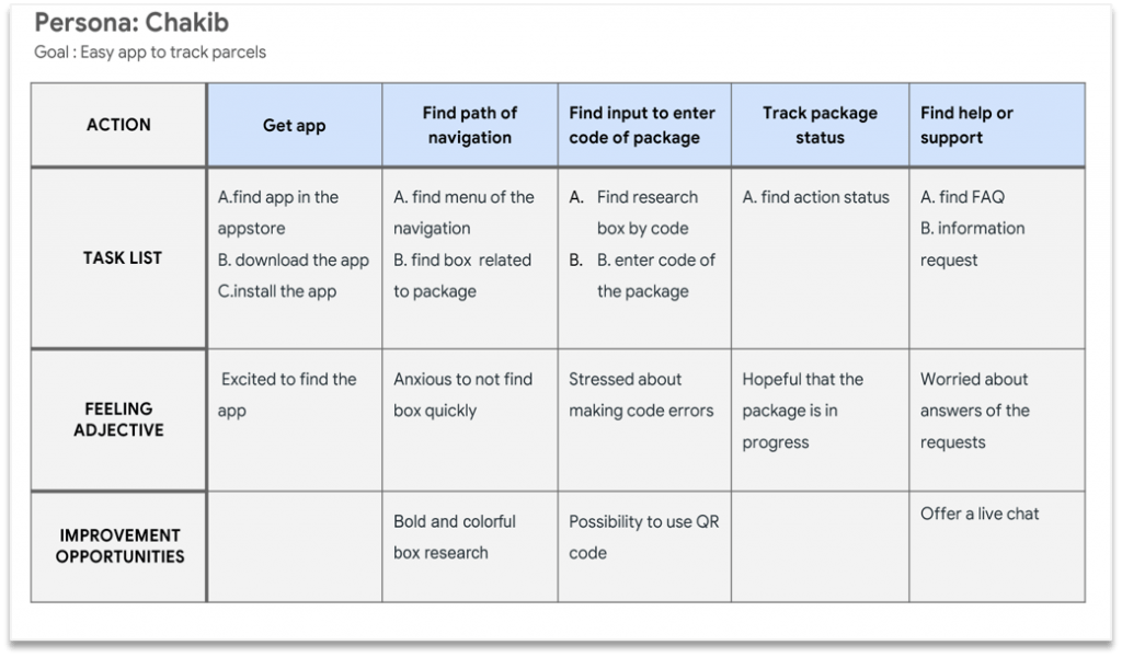 Mapping Chakib’s user journey revealed how helpful it would be for users to have access to My parcel app.