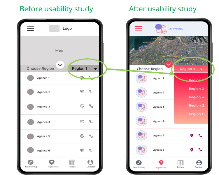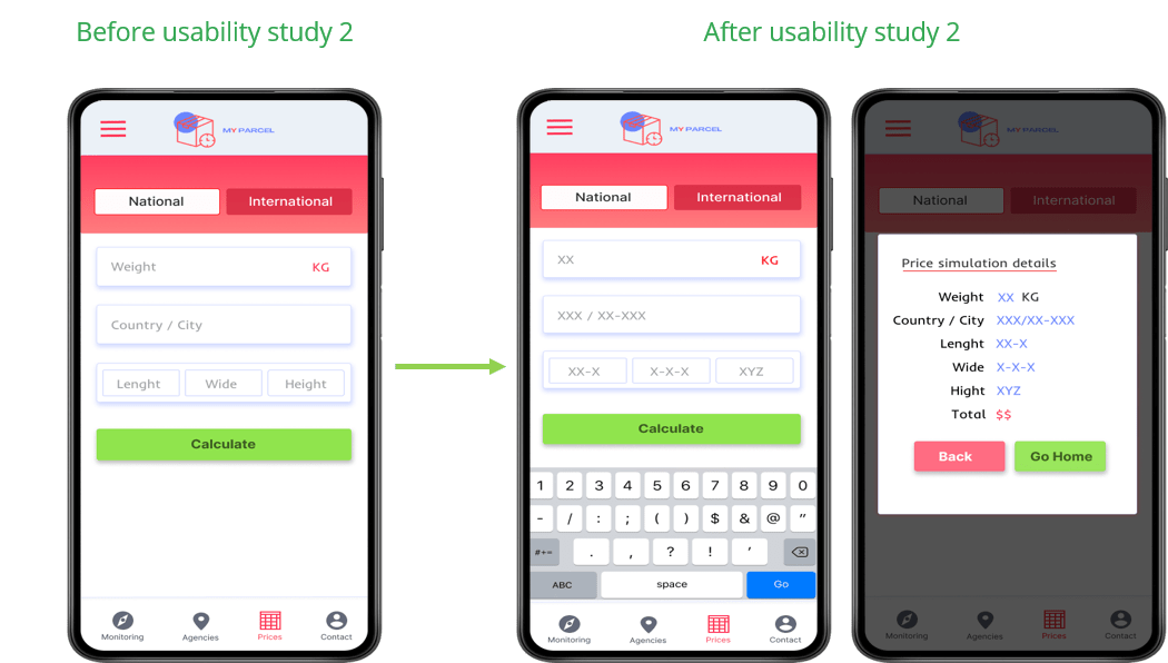 The final high fidelity prototype presented cleaner user flow for parcel tracking. It also met user needs for price calculation simulation, finding contact details agency and sending a message in some problem cases, as well as more customization.